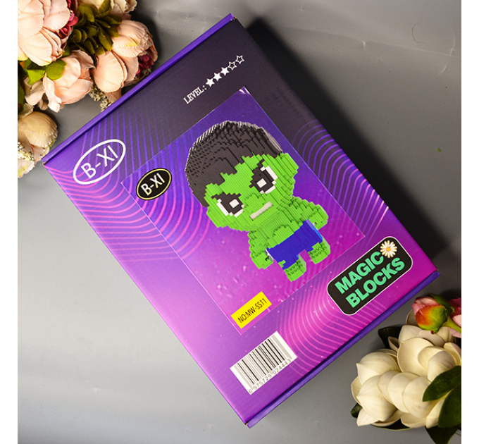 Конструктор 3Д детский Халк 30см Magic Blocks “Супергерои” Марвел 1939 деталей Marvel