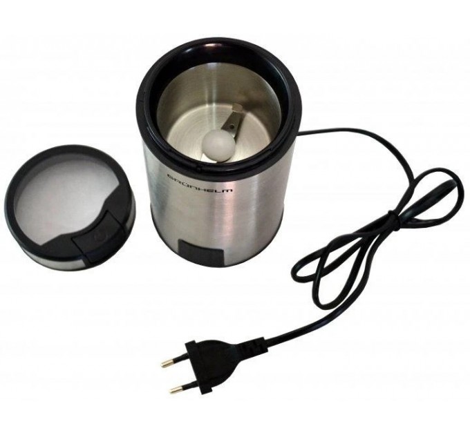 Кофемолка Grunhelm GС-3060S сделана в формате стильного устройства правильной цилиндрической формы, которое занимает минимум места и имеет достаточно вместительную рабочую камеру – 60 г. Она предельно компактна, поэтому для такой техники найдется место на любой столешнице. Нержавеющая сталь стала основой для корпуса, резервуара, ножей. За счет использования такого металла можно забыть о коррозии. Нижняя часть устройства имеет устойчивые резиновые ножки, которые очень цепки и не дают технике перемещаться, пока происходит рабочий процесс.
