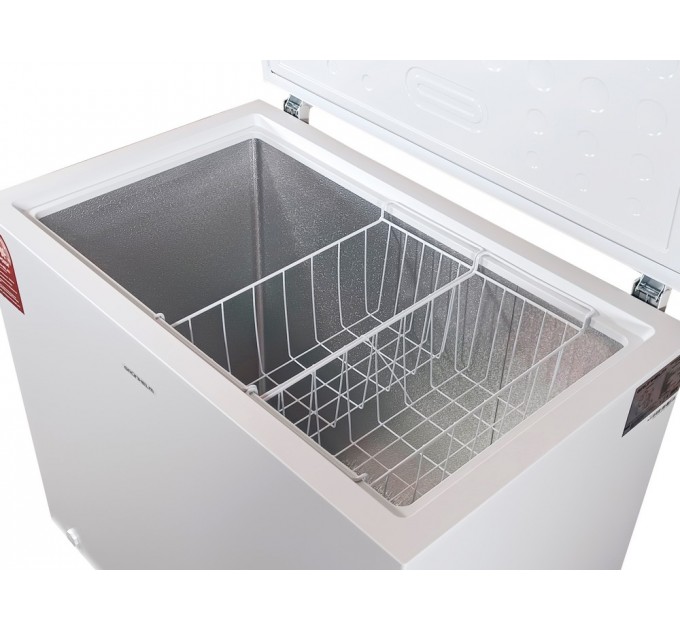 Морозильный сундук Grunhelm GCFW-251 – то, что нужно для замораживания продуктов питания, овощей, ягод, готовых блюд. Данная модель предназначена для работы при температуре окружающей среды от +18 до +38°С. Соответствует климатическому классу ST. Обладает низким уровнем шума и высоким классом энергоэффективности. Среди других преимуществ следует выделить капельную систему заморозки, механическое управление. Аппарат удерживает холод до 30 часов, а мощность заморозки составляет 13.5 кг/24 часа. Полезный объем морозилки – 246 л.